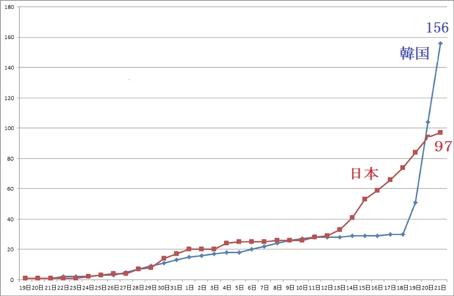 つい半月前には「日本、感染病後進国で恥さらし」(中央日報)と日本を嘲笑していた韓国なのでしたが・・・