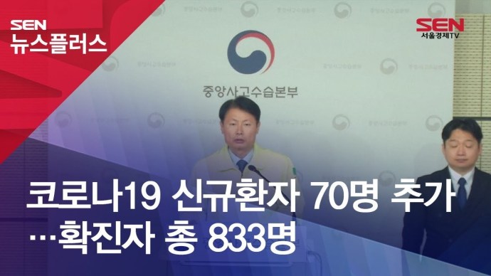 中央防疫対策本部は、今日(24日)午後4時の基準、「国内感染者70人が追加で確認され、すべて833人に確認された」と明らかにした。