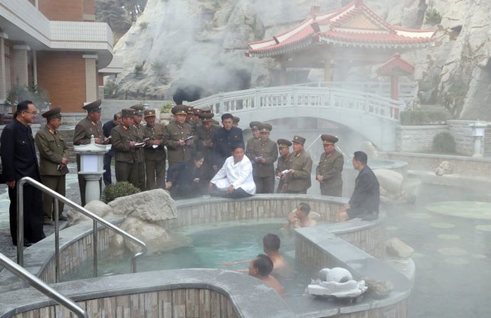 半年続けば北朝鮮は白旗か?風呂に浸かっているおっさんの間抜け具合が凄まじい。