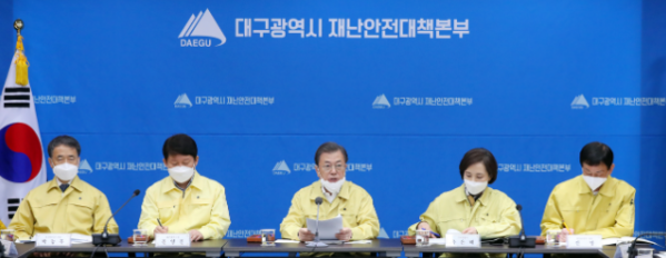 イ副市長は25日午後、大邱市役所で開催された特別対策会議に出席。同会議には文大統領をはじめ、ユ・ウネ社会副首相兼教育部教育部長官、パク・ヌンフ保健福祉部保健福祉部長官、チン・ヨン行政安全部長官、クォン・ヨンジン大邱市長らが同席していた。