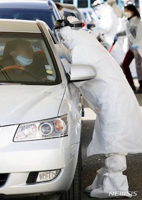 これ、韓国の「ドライブスルーコロナ検査」らしいんだけど、