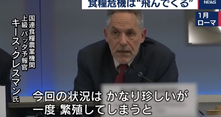 どれほどバッタが猛威を振るったところで,朝鮮半島より東に進む事はないから日本に全く関係ないな。