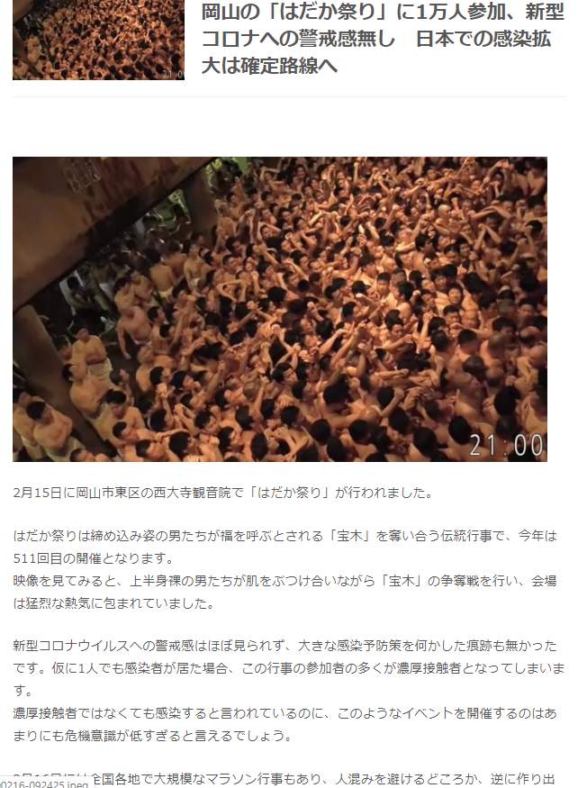 2月16日には全国各地で大規模なマラソン行事もあり、人混みを避けるどころか、逆に作り出している日本はある意味で凄いです。
