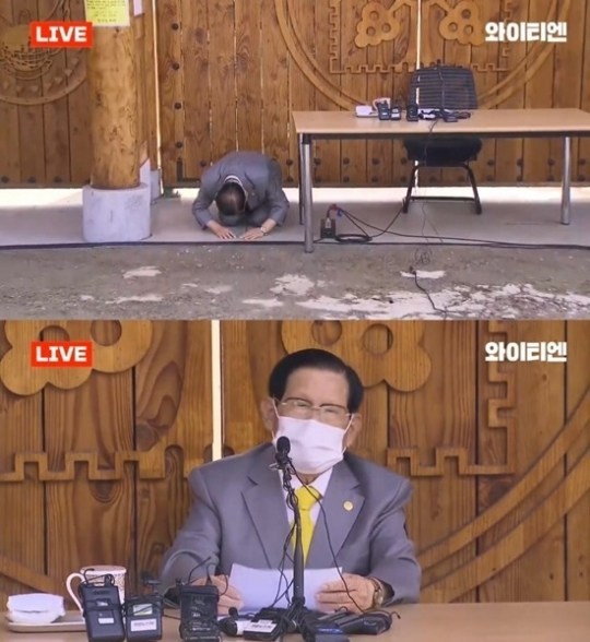 同国北部の加平(Gapyeong)で開かれた記者会見では、報道陣を前に土下座し、「意図的なものではなかったが、多くの人が感染してしまった」と説明。