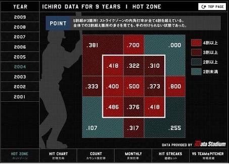彼の全盛期は凄まじいものでストライクゾーンは全て3割超え。
