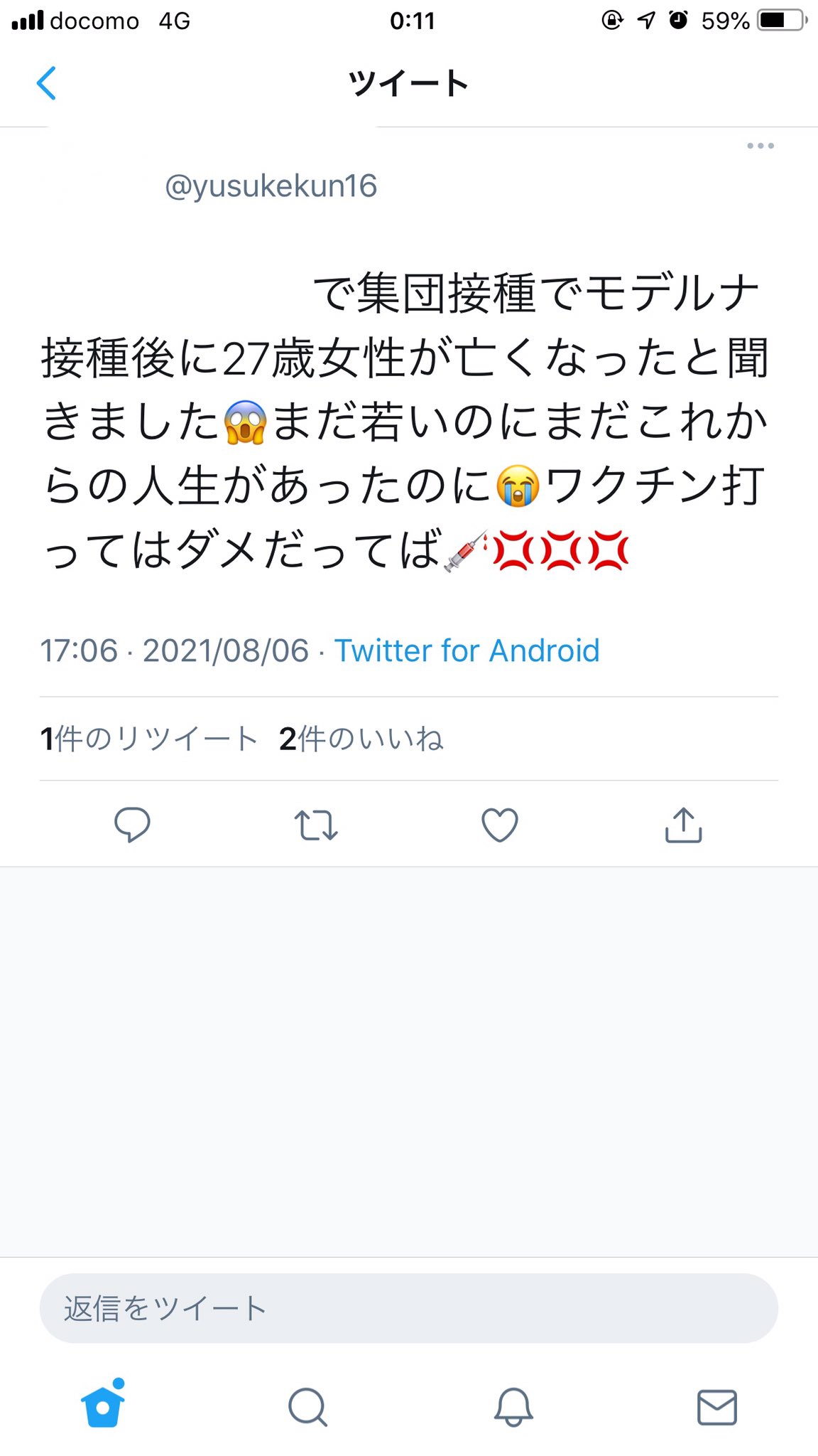 ところがそのうちのお金に困った美大生20歳の女の子が12月30日に接種し、2月に風呂場で泡を吹いて死んだ。バイト代9万円は支払われていない。みんなが止めるのにお金ほしさで参加した。