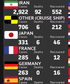 イタリアとイラン、死者数がえらい事になってる。これで韓国も日本人の入国制限かけるのがベストなんだよな