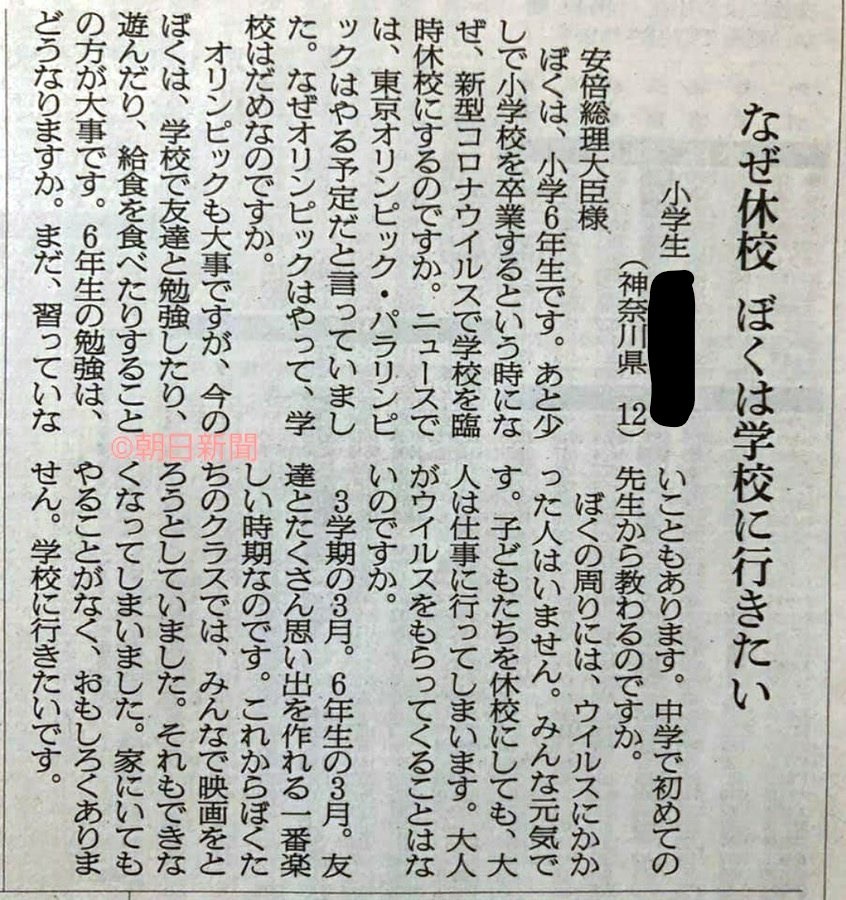 小学生が総理宛の手紙を新聞社に送るって発想出来たら