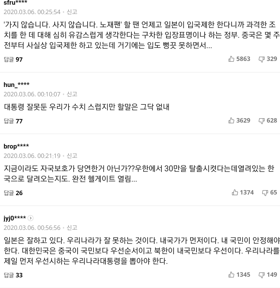 4. 일본이 잘한 것이고, 한국이 잘못한 것이다. 일본은 일본인을 우선시하는데, 한국은 중국인을 우선하고 있으니 투표를 잘해야한다. 한국인을 우선하는 대표를 뽑아야한다.>>1