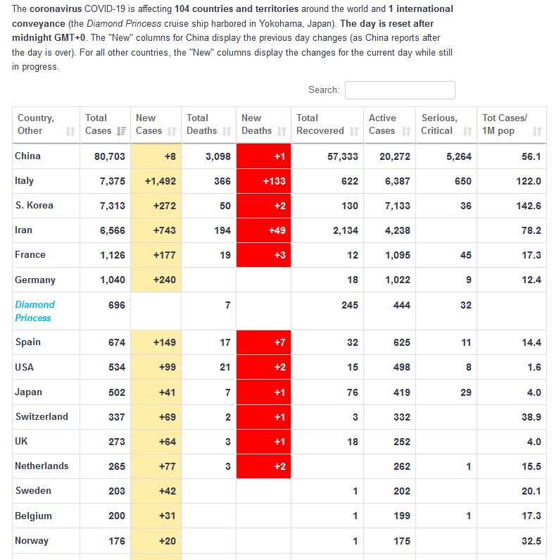 スペイン、US,スイスの感染者数は数日で日本を超えるんだろうし。