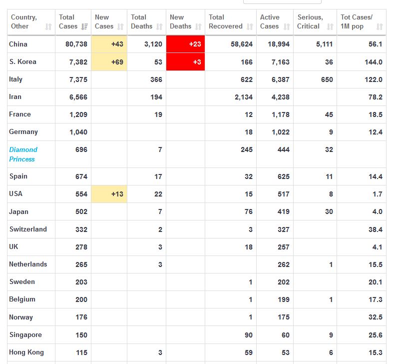 で比較はしやすいね感染者数より active cases か serious,criticalで並べた方が、実態が分かりやすいかな...