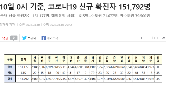 国内新規感染者は151,177人、海外流入事例は615人。首都圏71,677人、非首都圏79,500人