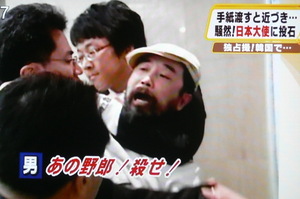 そう、リッパート大使の前にも、日本大使に対して投石してる活動家、金基宗。