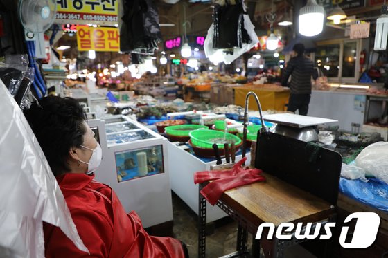 新型コロナウイルス感染症の拡散のためか、週末の7日午後の韓国、光州(クァンジュ)の市場は活気が失われたようであった。
