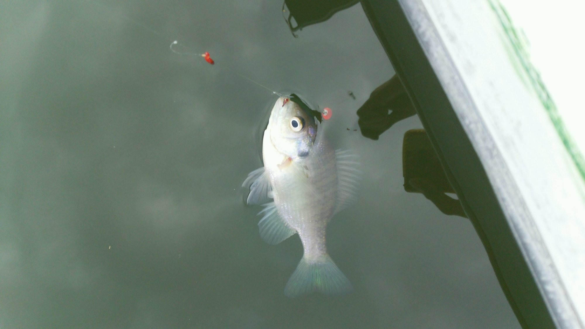 ワカサギつりにて大物が('ω')
