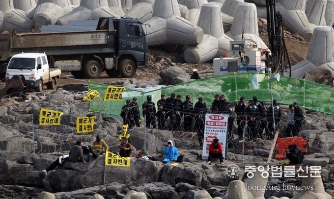 海軍は9日、A氏などデモ4人を軍刑法軍用施設ソングェジュェと軍用施設侵入の疑いで西帰浦警察署に告訴した。 これらは去る7日、済州海軍基地部隊鉄条網を毀損し無断で侵入した疑いを受ける。