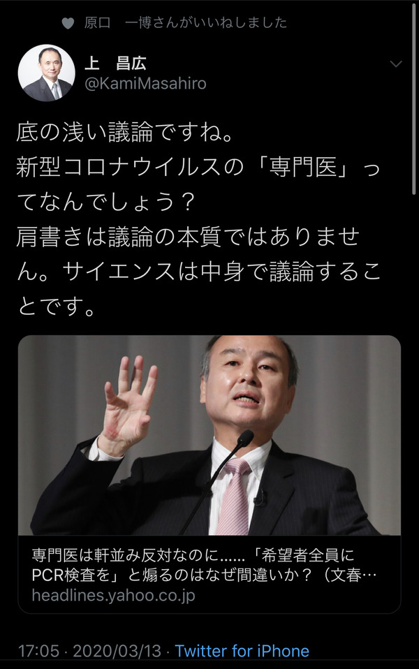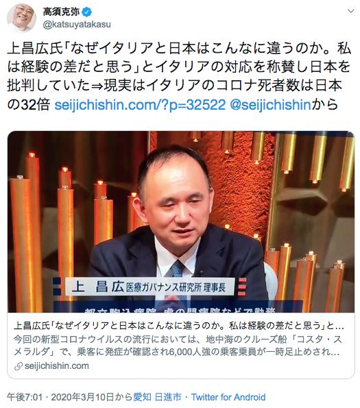 上昌広先生は感染症の専門家でもなんでもありません。