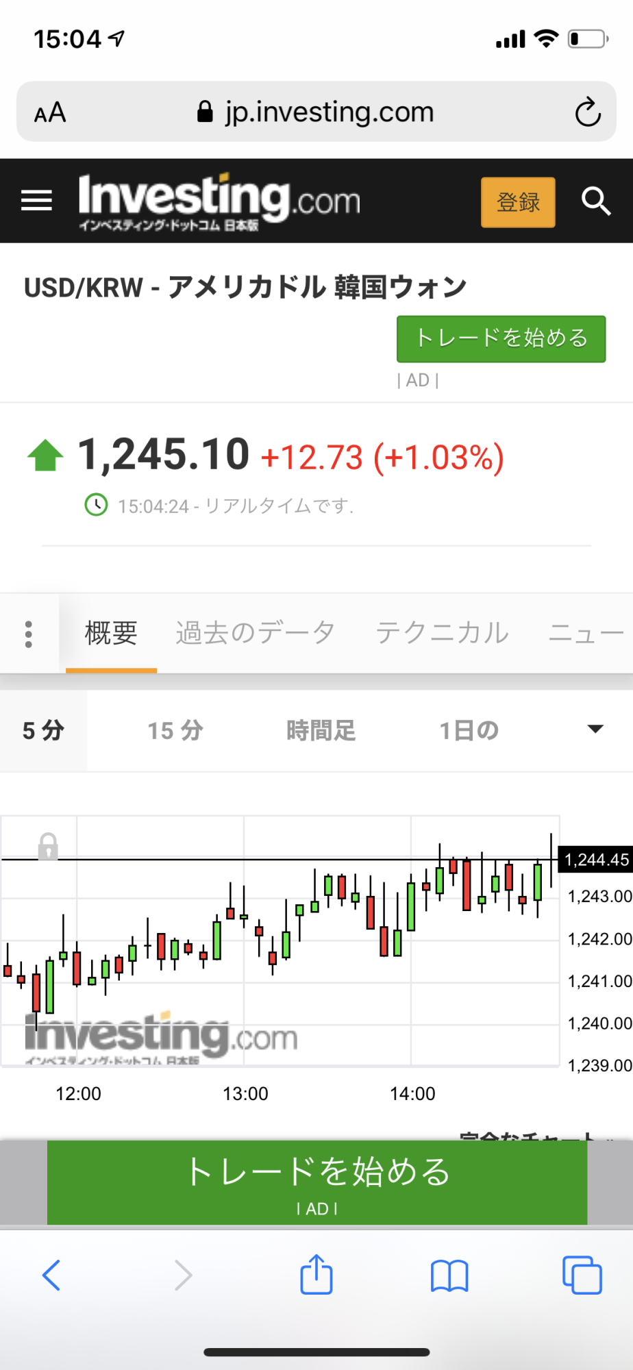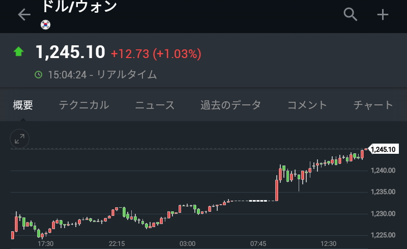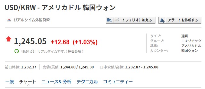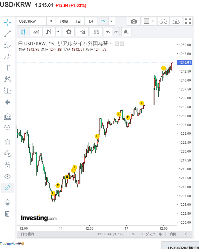 15:05:49 - リアルタイムです. ( 免責条項 )USD/KRW: 1245.01