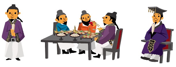 いろいろな貢物を献上させます。