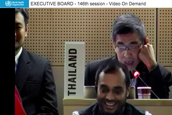 《会議の中で、タイ代表は「議長、旅行制限を確実に実行するなら、まずテドロス事務局長を隔離したうえ、今回の会議を中止にすべきです。事務局長は北京を訪問したばかりです。会議に参加した多くのメンバーの国では旅行制限を実施しています。メンバーらは事務局長とハグしたり、握手したりしています。この人たちはみんなリスクに晒されています」と話し、批判を始めた。テドロス事務局長は1月27〜29日の日程で訪中した。