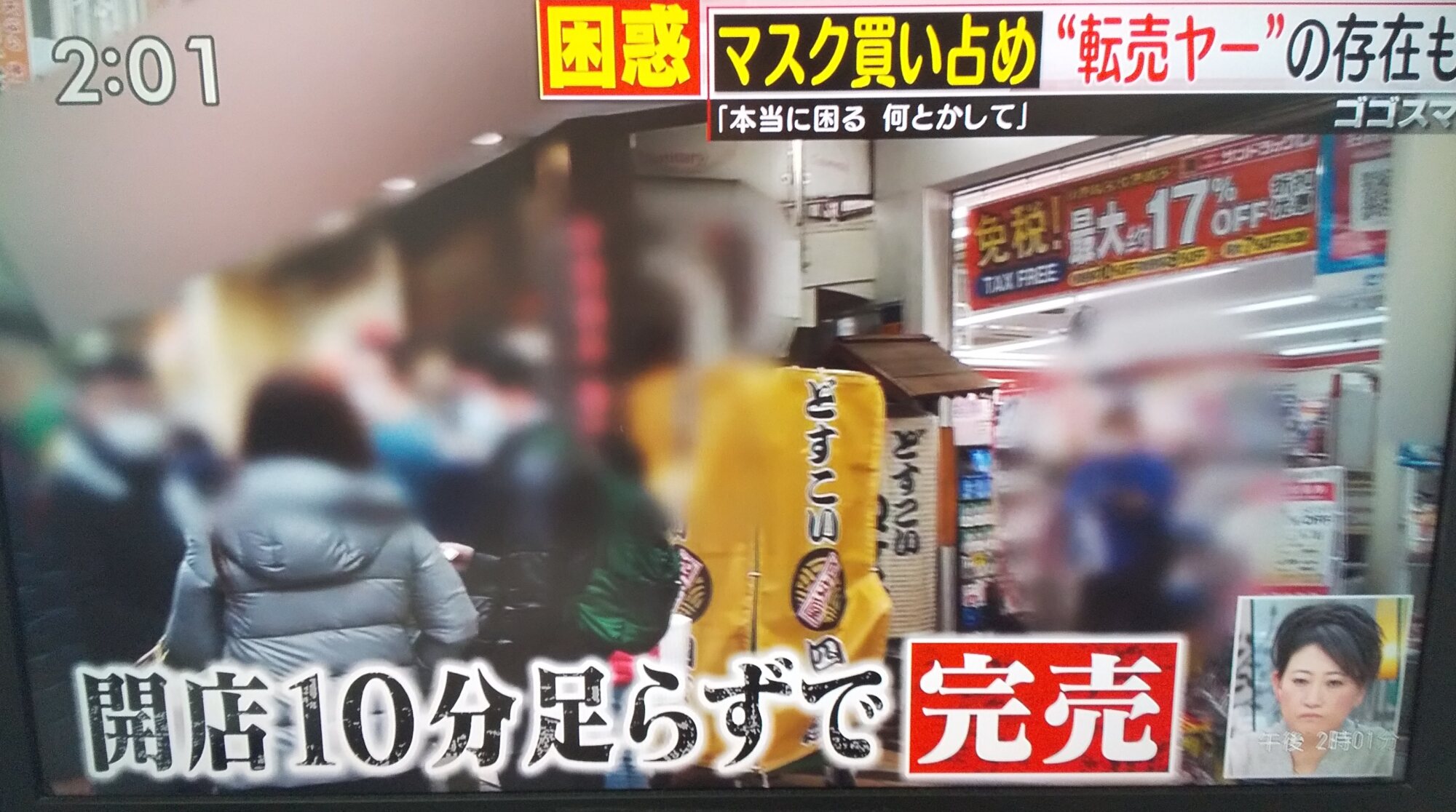 中華がドラッグストアツアーして全部買っていくから、消毒もマスクも手に入らないねー