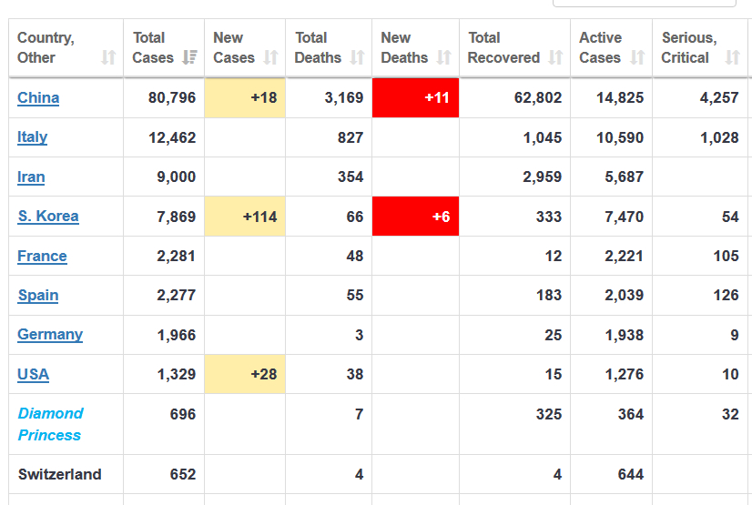 今後韓国では感染者数の増加が鈍化し、死亡者数が増加すると予想しておく。韓国の新型肺炎感染者、前日比114人増の計7869人…死者は6人増の計67人