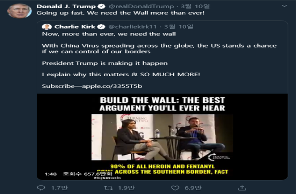 武漢コロナウイルス感染症(コロナ19)の名称をめぐり、米国と中国が対立している中、ドナルド・トランプ米国大統領がTwitterで武漢コロナを「チャイナウイルス(China Virus)」と指称し記事を掲載した。