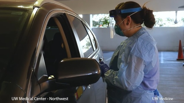 UW 의료센터는 드라이브 스루 방식을 통해 하루 40~50명을 검사할 수 있다. 현재 진료소는