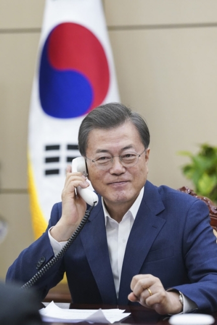 13日、大統領府によると、文大統領はこの日の通話で「G20次元での特別ビデオ首脳会議の開催もいいだろうと思う」と提案した。