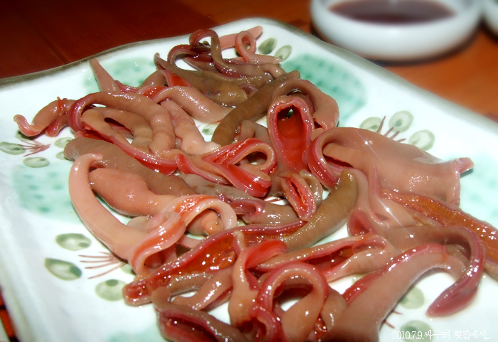 日本では、軽く湯通ししたり皮を炙る刺身も、韓国ではそのまま生で出す