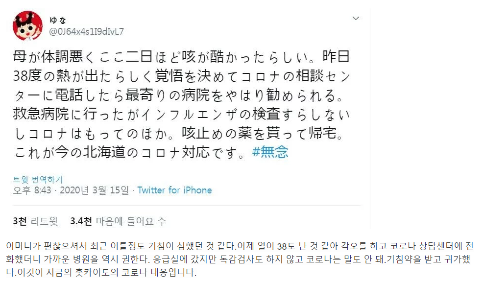 >とゆう事で医者曰く母はただの風邪だったみたいです。本当に皆さんありがとうございました。知識ある医者が言うんだからそうだと思います。北海道はコロナ蔓延していますが母はコロナの検査するに値しないただの風邪のようです。ただひとつ、必要とする方が検査できる未来がきますように。それだけです