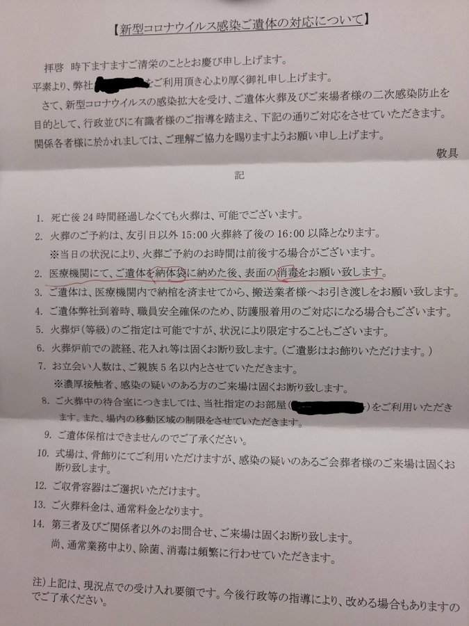 そもそもコロナ感染者と確定していない死者については、24時間以内の火葬は違法だ。アホwwwwきょうも電話をかけまくる