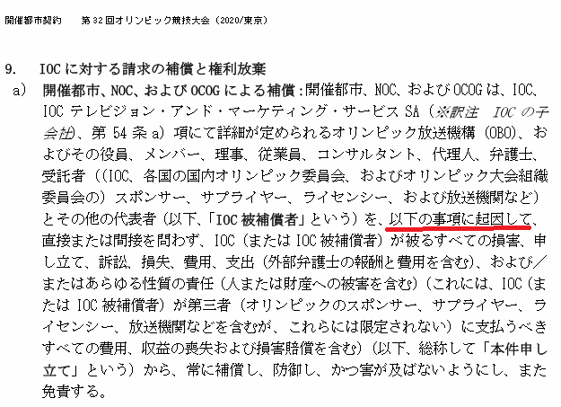 画像の都市契約を根拠に「IOCが受けた損害は東京都・NOCが損害を全て補償するという契約だ!」と叫んでいるが、単におパヨさんお得意の情報の切り取りだよ。