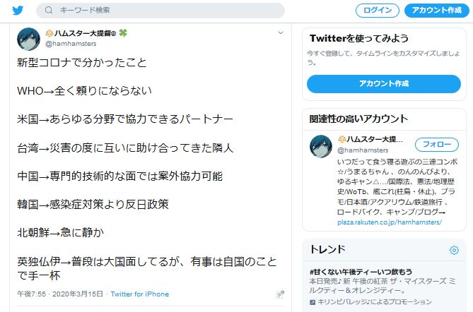 日本との比較>>>感染症との戦い有名でもない単なる一個人のつぶやきを拾ってきて、