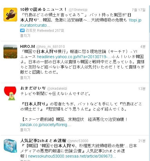 それ、言おうとしてたぁ〜!한국인들이 '일본인 사냥'?…도 넘은 日 언론 왜곡 보도 2013-07-19 18:32