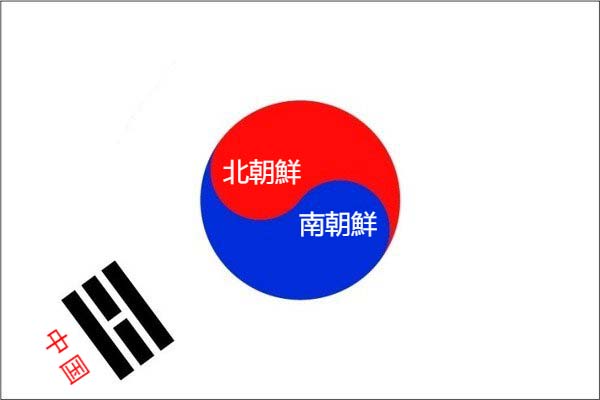陰中の陽、陽中の陰(勾玉状に表された陰陽の中に書かれた目玉)が韓国国旗には欠けているので