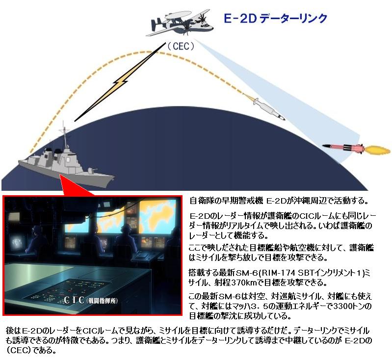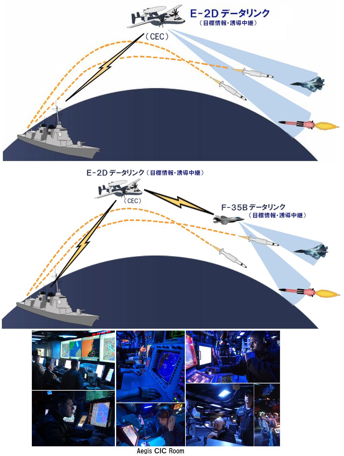 「まや」の最大の特徴は、海上自衛隊の護衛艦で初めて「CEC(Cooperative Engagement Capability、共同交戦能力)」を付与されている点です。これは護衛艦や潜水艦、航空機などがネットワークで結ばれ、各々が捉えた敵情報を共有するというもので、たとえば護衛艦単体では捉えられない超長距離(水平線以遠)の目標情報も、味方のレーダーが捉えていればリアルタイムで目標として識別し、攻撃を可能とします。CECは、自勢力のみならず同盟国同士でもリンクできるため、日米間や日豪間などで情報共有できるようになります。
