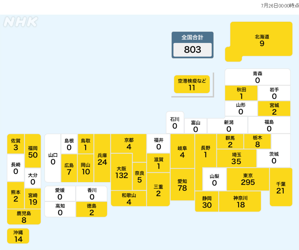 日本は今日の発表分で800人超えが確定しました【5/22 新規感染者数】日本25人 韓国23人