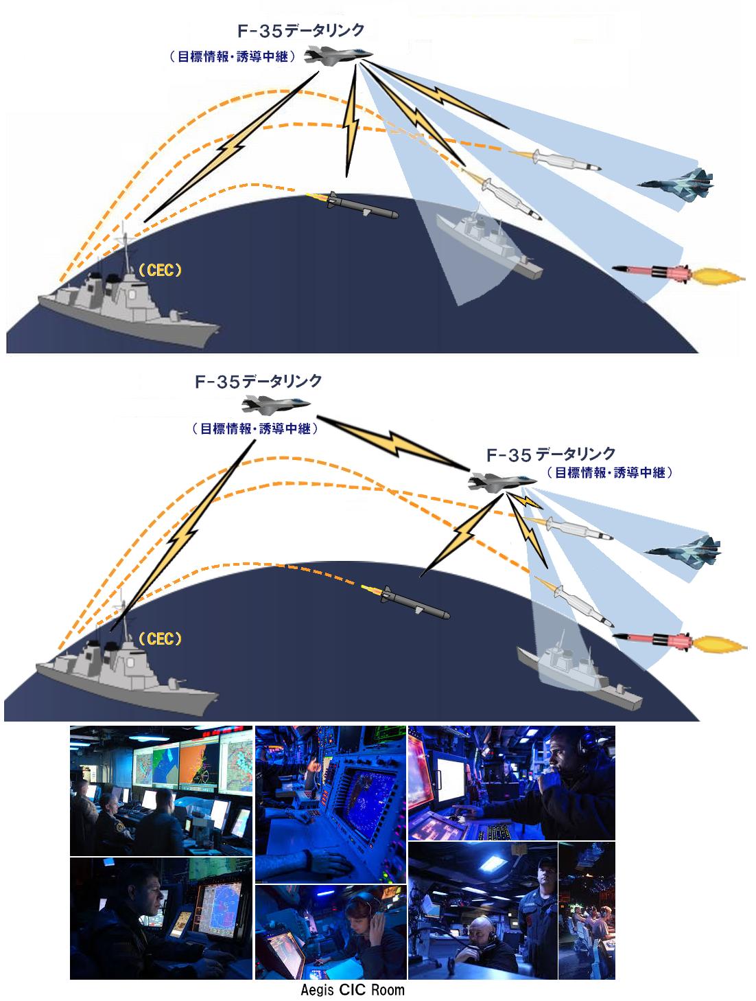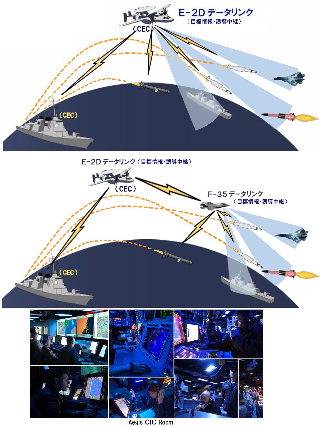 ところが"CEC=共同交戦能力"を搭載すると早期警戒機E-2Dのレーダー情報やF-35の