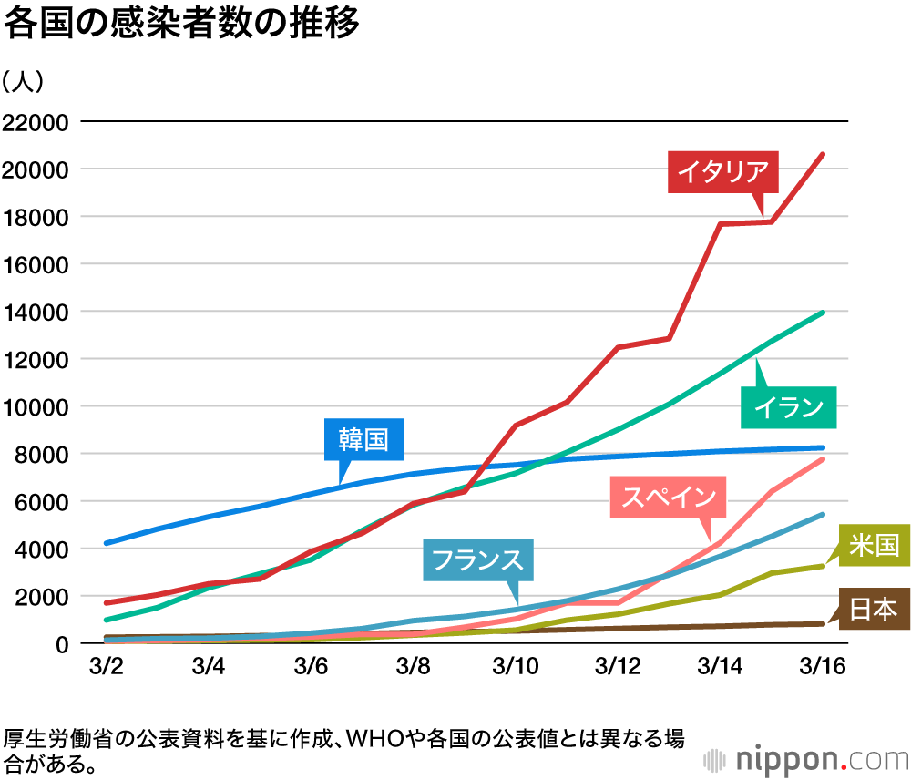 韓国は日本と違い政府に中止させる強制力が有りながら国民や企業の意識レベルが低かった為に集会等を続けた結果が日本より感染拡大へと繋がった
