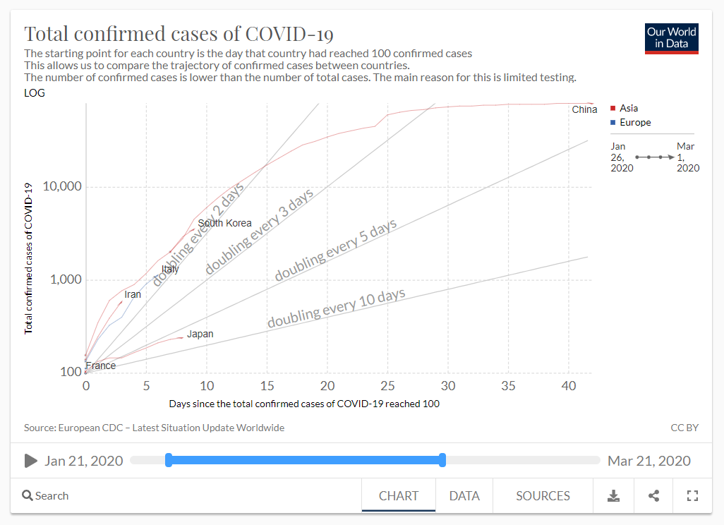 일본의 확진자 통계와 세계의 비교
