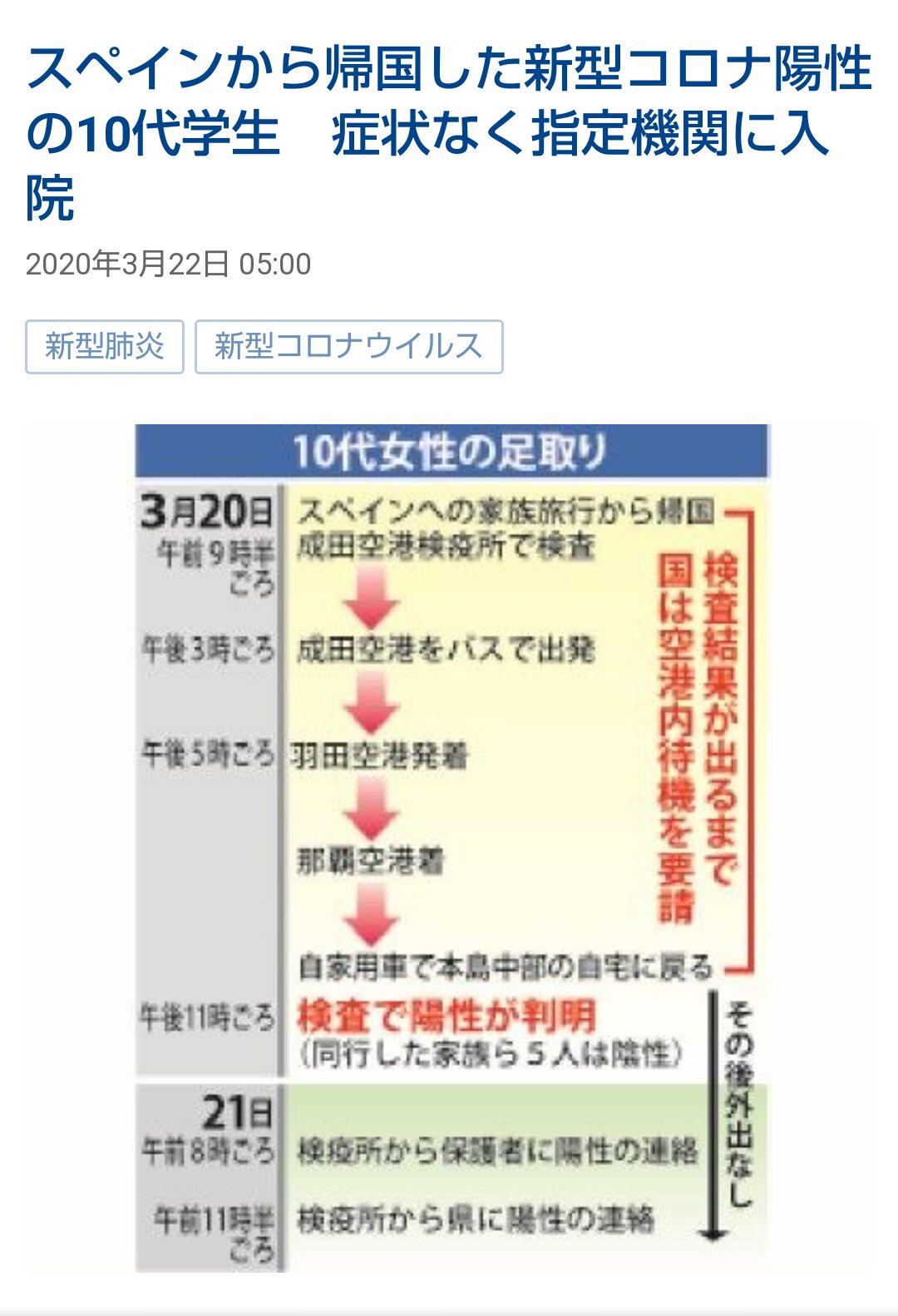 スペイン帰りの女性、感染判明 成田で検査、結果待たず沖縄へ