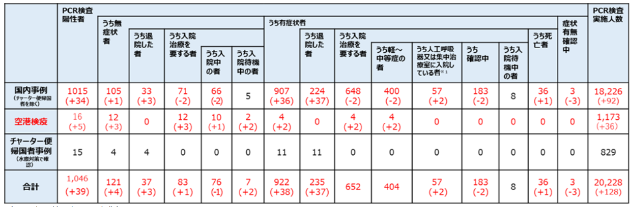 日本 814人(前日比 +15人)←クルーズ船の死亡者を除く