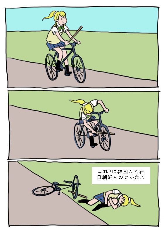 続きは無いのか?韓国人バージョンだと、このあと日本人が起こしてあげて、新しい自転車も買ってあげるんだが…。もう封じ込めなんてできないんだから、このままじわじわと感染させて集団免疫を作るしか止める方法はないぞ。