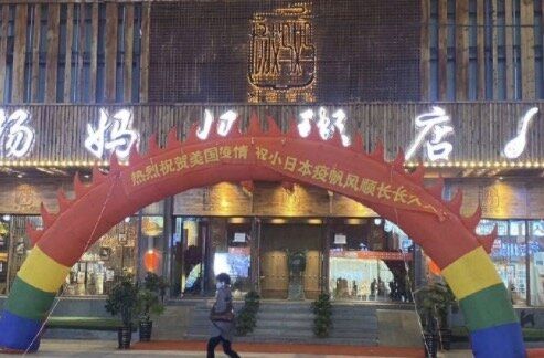 中国東北部・瀋陽市のおかゆなどを提供する飲食チェーン店が設置したものだとわかり、中国のネット空間では「気持ちが悪い。人がやることではない」「中国人の顔に泥を塗る行為だ」などと批判が殺到していた。