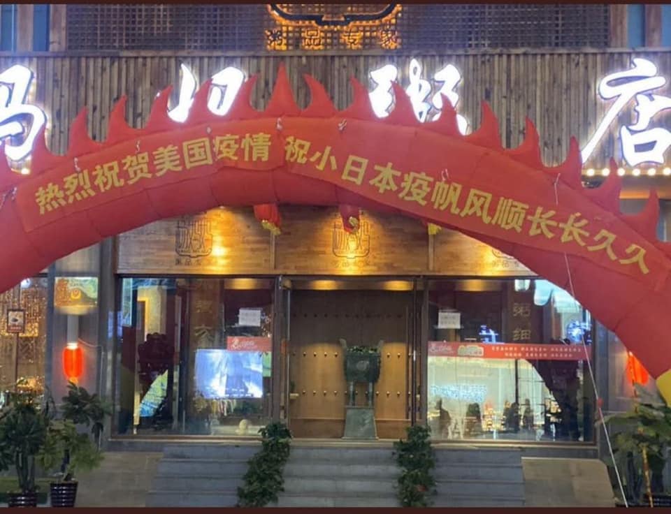 「日本の感染が永く続きますように」など、日本とアメリカの新型コロナウイルスの感染拡大を祝うようなメッセージを店の入口に掲げた中国・瀋陽市の飲食店が3月23日、謝罪文を掲載した。