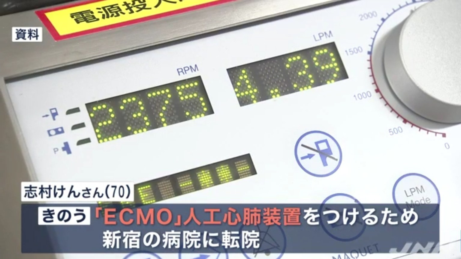 人工心肺装置装着らしいからかなり危ない。以前肺炎での入院歴あり。