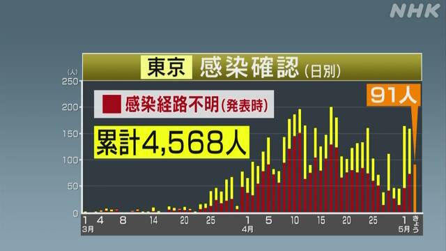 東京都 新たに91人の感染確認 4人死亡 新型コロナウイルス