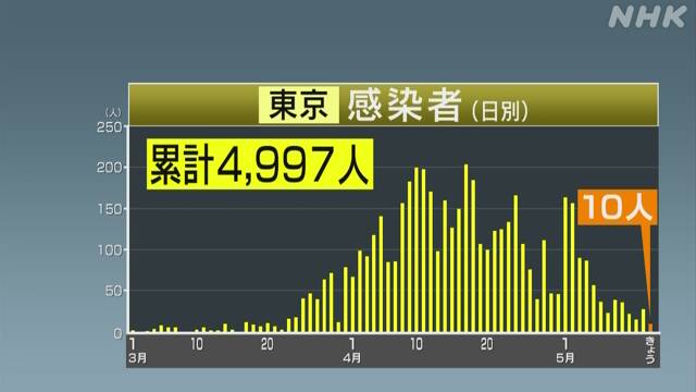 https://www3.nhk.or.jp/news/html/20200517/k10012433911000.html東京都 新たに10人感染確認 4人死亡 新型コロナウイルス