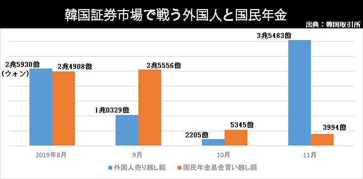 グラフ「韓国証券市場で戦う外国人と国民年金」をご覧下さい。